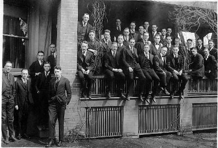 Twenty-one members returned to the university that fall, but three left for service before the semester began, and they were followed shortly afterwards by nine of their brothers. Despite these disruptions, at the end of the first semester of 1917-18, Alpha Sigma Tau ranked second among all social fraternities academically and third in total membership, and the following semester it placed third in inter-fraternity basketball. Theta Chi ChapterFinally, on March 18, 1918, a message from the Grand Chapter of Theta Chi was read at the dinner table: “Your petition has been granted and you are hereby authorized to organize yourselves into a chapter of the Theta Chi Fraternity to be known and styled The Psi Chapter of Theta Chi Fraternity.” After much correspondence with the Grand Chapter, installation was set for Saturday, May 4, 1918.7 Brothers Joel W. MacGregory (Epsilon ‘13) and Wilbur C. Searle (Epsilon ‘07) arrived on May 2 from Massachusetts, and were joined by Fred Putney of Madison to form the installation committee. Thomas H. Brock, an active from Rho Chapter, arrived from Illinois on Saturday morning to assist them. The installation ceremony began at 1 p.m. Saturday in the chapter house. Twenty-four men were initiated as active members from Alpha Sigma Tau, and six more were initiated as alumni members. 8 With the installation of the charter members, the officers of the new Psi Chapter were elected and installed. Walter E. Malzahn, who had joined Alpha Sigma Tau only two months earlier, became the first president of Psi Chapter. The new officers then proceeded to initiate their first two pledges. There being no further business, the meeting was closed at 6 p.m. On the official roster of Psi Chapter, Fred Fuhrmann’s name was entered as No. 1 for his position as founder of the chapter.9 The brothers went from the ceremonies to an installation banquet at the Madison Club that evening. Following dinner and a toast by MacGregor, the active members, alumni, and committee members took turns giving speeches, and Dean Goodnight closed the banquet with a speech on “Wisconsin and Theta Chi.” An installation dance was held the next Saturday evening at the parlor of Lathrop Hall. In according with the tradition of Wisconsin fraternities, the newly installed chapter, the 35th chapter of a national fraternity to be established at Wisconsin, and the 29th chapter of a national social fraternity, invited each fraternity on campus to elect a delegate to attend.